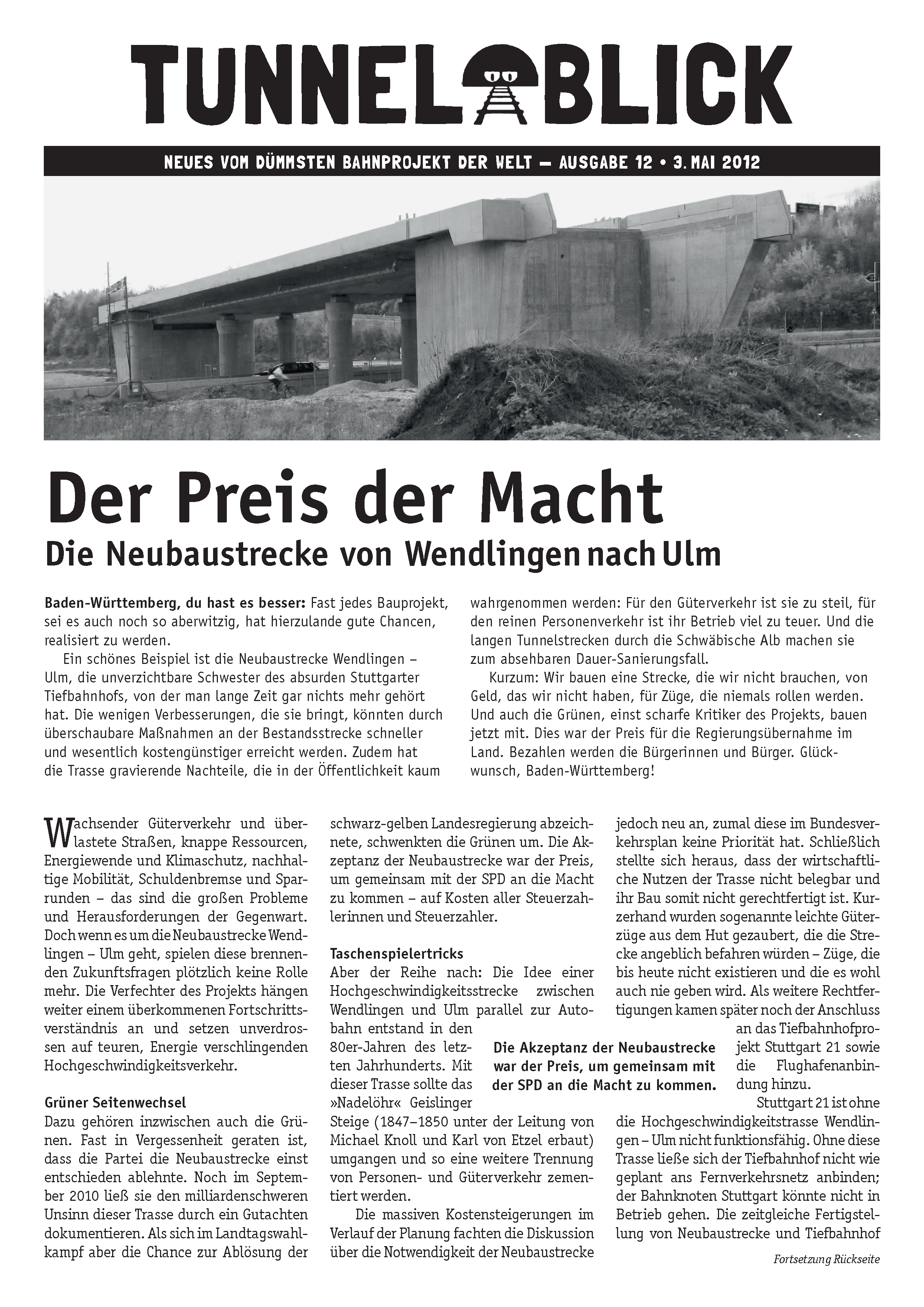 Ein schönes Beispiel ist die Neubaustrecke Wendlingen – Ulm, die unverzichtbare Schwester des absurden Stuttgarter Tiefbahnhofs, von der man lange Zeit gar nichts mehr gehört hat.