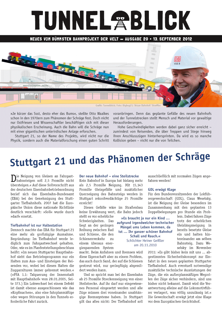 Stuttgart 21, so der Name des Projekts, wird nicht nur die Physik, sondern auch die Materialforschung einen guten Schritt voranbringen. Denn das geplante Gefälle des neuen Bahnhofs und der Tunnelstrecken stellt Mensch und Material vor gewaltige