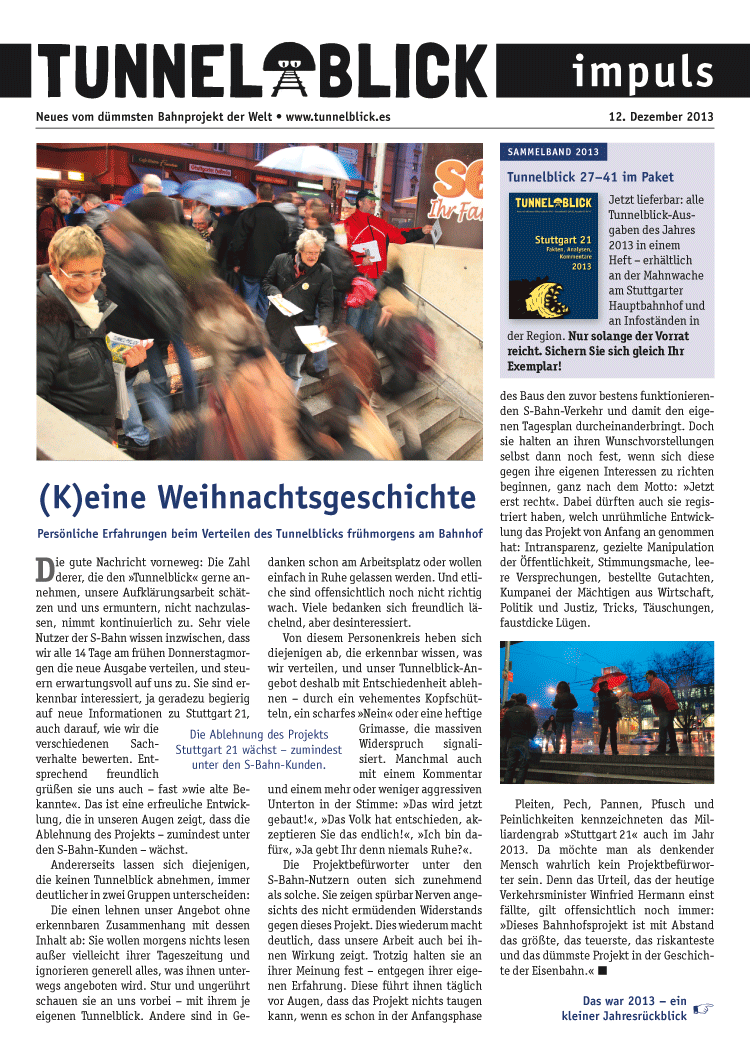 - (K)eine Weihnachtsgeschichte – Persönliche Erfahrungen beim Verteilen des Tunnelblicks frühmorgens am Bahnhof